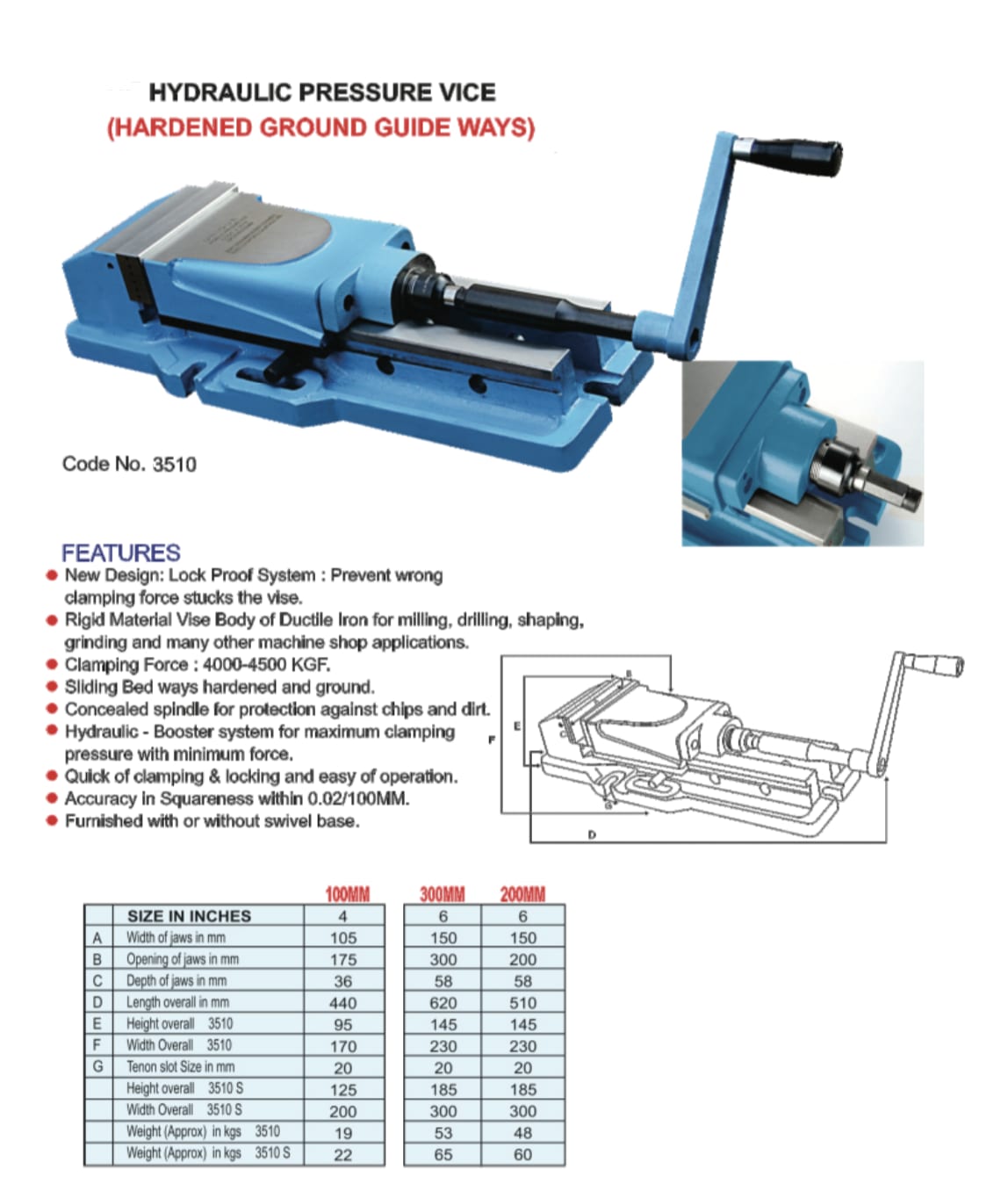 - New Design: Lock Proof System : Prevent Wrong Clamping Force Stucks the Vice.