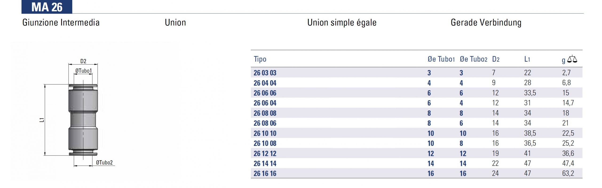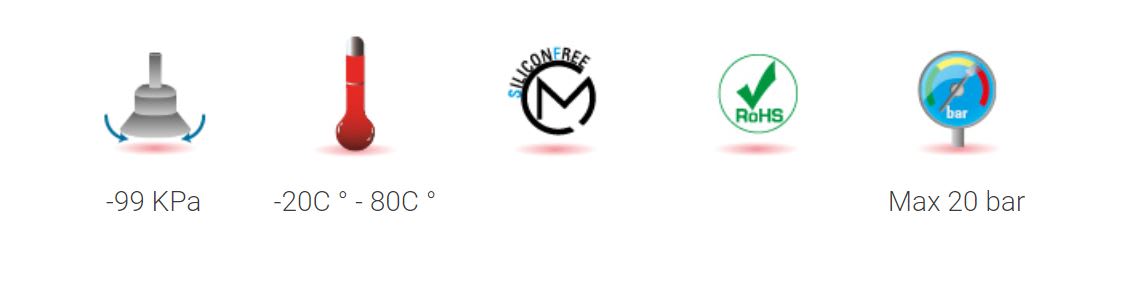 Recommended connection pipes: PA11, PA12, PA6, Polyethylene PE, PU Polyurethane (98 Shore A).